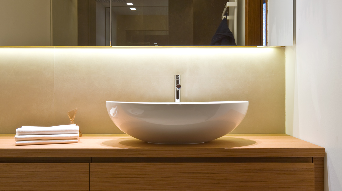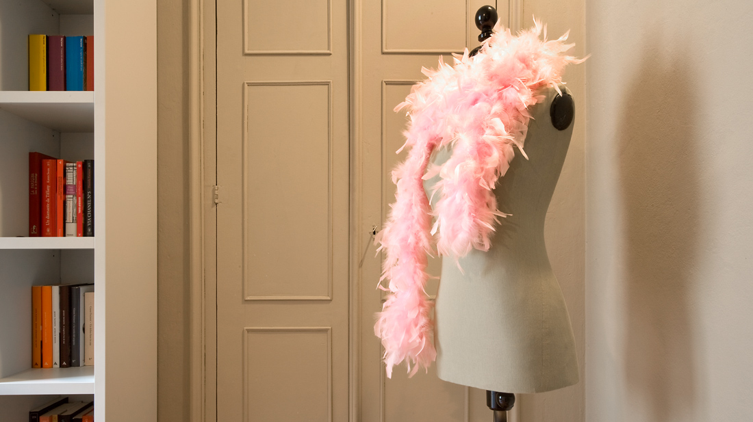 Il rinnovamento dello spazio domestico valorizza gli aspetti originari dell’abitazione, quali le pavimentazioni lignee, le chiambrane sagomate e le porte con vetrature smerigliate, che conservano il carattere autentico della casa dalle sue origini, mentre le nuove esigenze funzionali contribuiscono a definire un ambiente domestico dinamico e moderno. Lo spazio di soggiorno e studio presentano l’aspetto ‘caldo’ e ‘riflessivo’ che identifica l’abitazione, che nella sua interezza ricerca un senso ‘misurato’ di spazialità, privilegiando all’inserimento di singoli arredi le soluzioni integrate a parete, quali nicchie murarie, armadi chiusi e scaffalature attrezzate, a favore di un maggiore ordine visivo che rifugge un approccio disordinato di addizioni e contrapposizioni. Fanno eccezione gli inserimenti di alcuni object trouvé che hanno il compito di conferire un carattere più ‘vivo’ e personale agli spazi domestici.